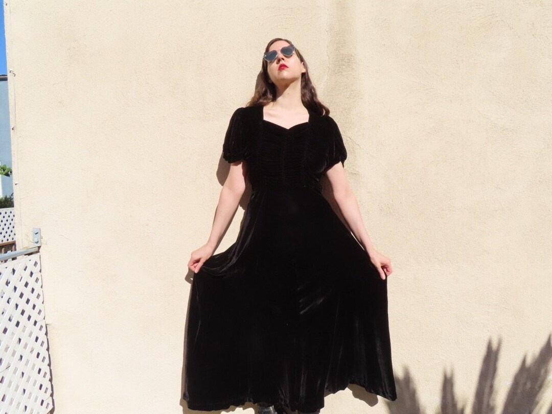 1930s Velvet Dress Black Sweetheart Ruched Bodice Short Net Etsy